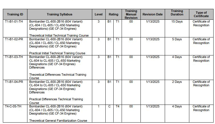 Bombardier CL-600-2B16 - CL-604 / CL-605 / CL-650 Variants Initial Technical Training Course CAT B1, Level 3, Theoretical & Practical